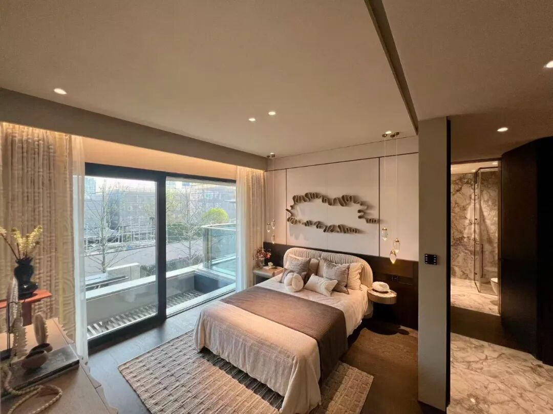 在凤栖云庐的四代宅样板间中,这种**光影与材质的互动**被发挥到极致——白天,自然光透过宽大的玻璃窗洒入室内,墙面呈现出细腻的变化;夜晚,人工照明则创造出一种亲密而舒适的包裹感。