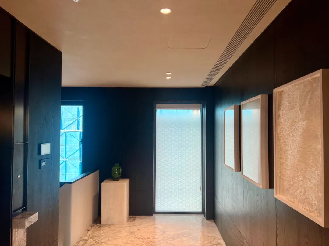 在**合院户型**中,艺术漆与天然木材、定制金属等材质的组合,创造出既有现代感又不失温度的生活空间。大面积的艺术漆墙面成为业主艺术收藏的最佳背景,既不抢夺注意力,又提升了整体空间的质感。